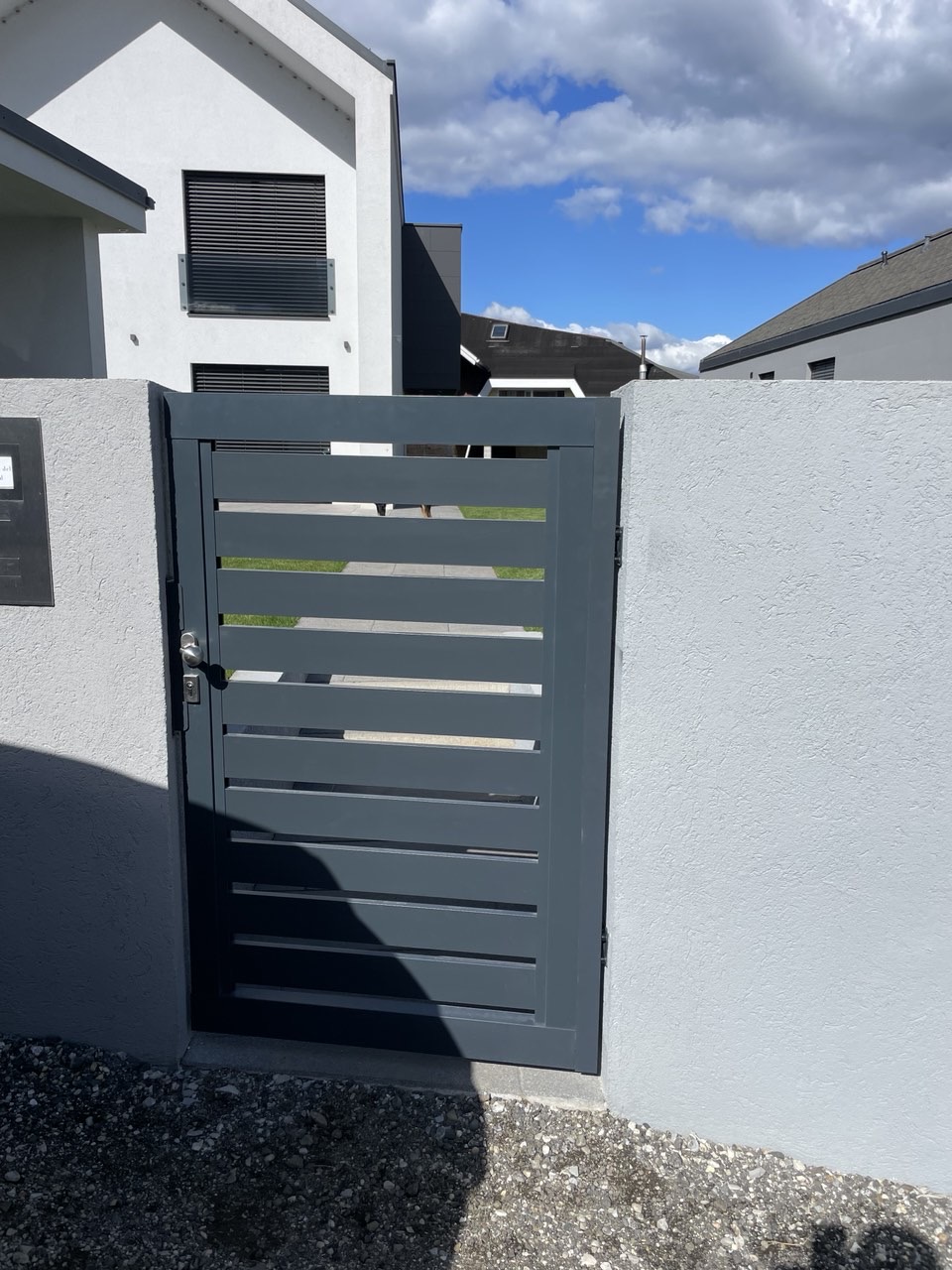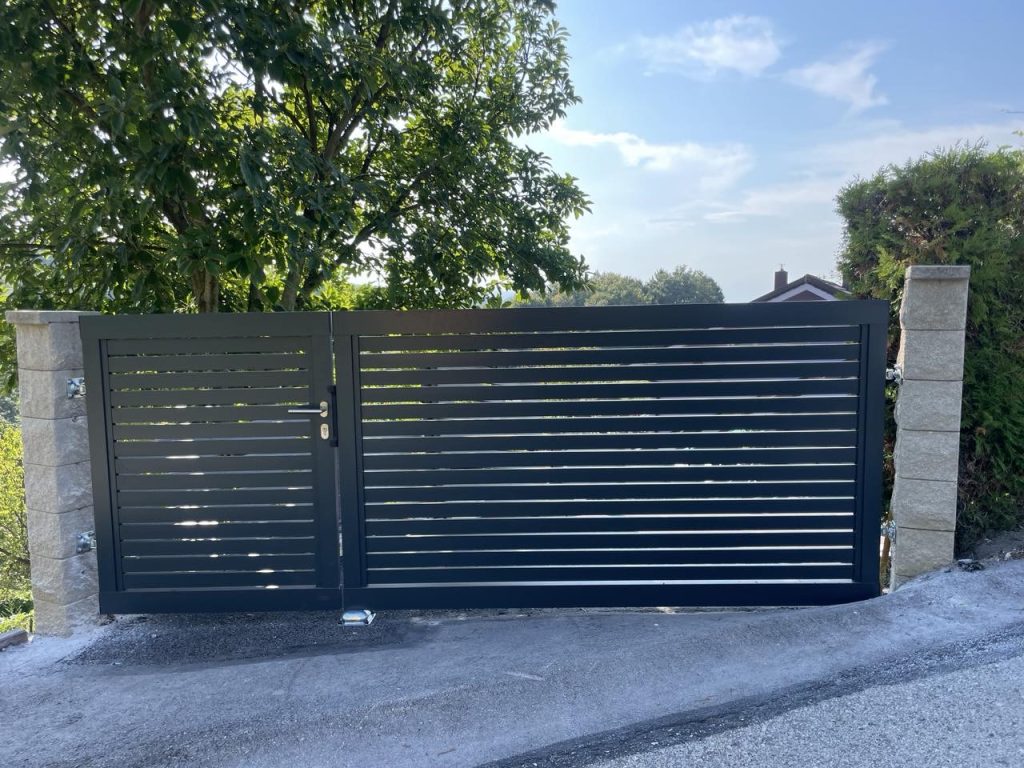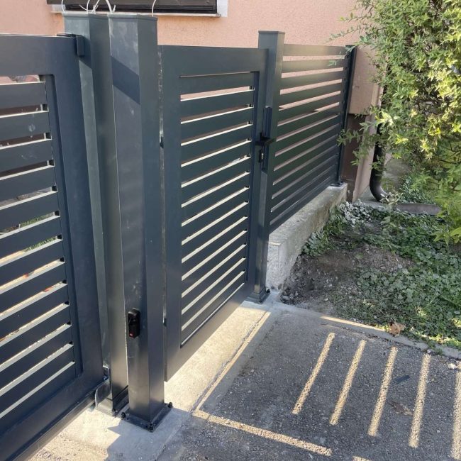 Naša ponudba dvoriščnih vrat je zasnovana, da dopolni in izboljša videz vašega zunanjega prostora, hkrati pa zagotavlja varnost in zaščito. Dvoriščna vrata so izdelana v istem profilu kot naše aluminijaste ograje, kar omogoča enotno in skladno oblikovanje vašega okolja.
